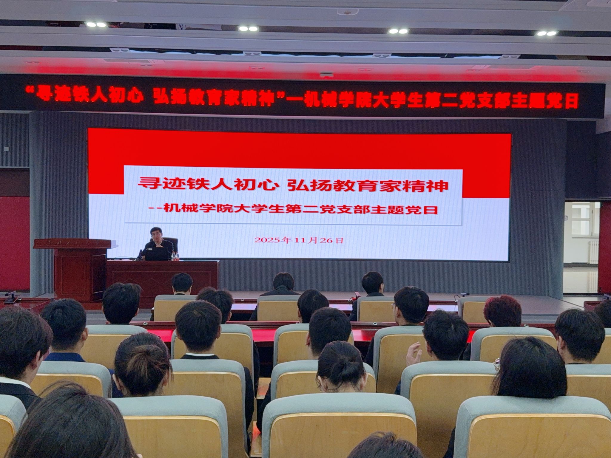 为深入学习贯彻习近平总书记关于教育的重要论述,大力弘扬新时代教育家精神,传承铁人基因,凝聚精神力量,强化党员身份意识与责任担当,11月26日,milan米兰官网大学生第二党支部开展“寻迹铁人初心 弘扬教育家精神”主题党日活动。会议由支部书记卢梦媚主持,副校长李伟、milan米兰官网相关负责人参加,支部全体党员在精神溯源与榜样学习中筑牢信仰之基,汲取奋进动能。