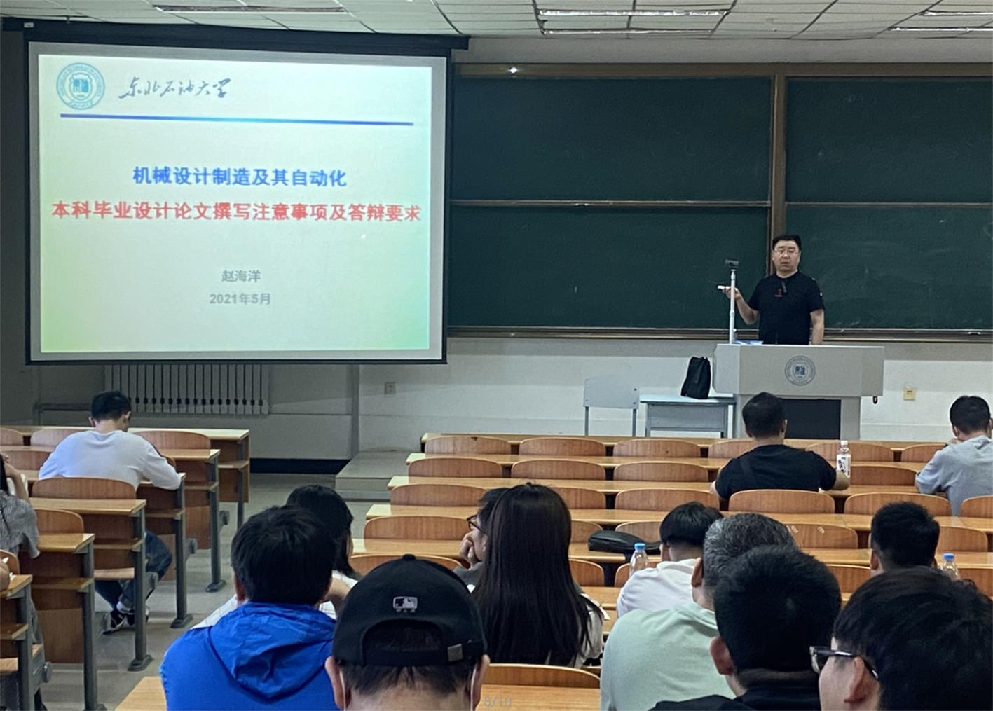 2021年5月19日,机自专业教研室主任赵海洋副教授在主C-502教室进行了题为“本科毕业设计论文撰写注意事项及答辩要求”的专题讲座,系统解读了毕业设计论文撰写的内容与要求,详细阐述了各部分撰写的关键要点,全面介绍了答辩要求与注意事项、答辩PPT制作技巧,答辩前后材料准备工作,关键材料提交时间节点,有效保证了学生毕业设计存档材料的规范性。