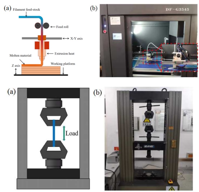 该论文属于增材制造领域。熔融沉积是制备复杂形状热塑性部件的常用方法,现已被广泛运用于航空航天、医疗等多个领域。PLA(聚乳酸)具备环保、廉价、无毒等优点,是制造熔融沉积产品的理想材料,但纯PLA产品的韧性及强度较差。因此,学者们采用多种方法探究了影响PLA零件力学性能的因素,但当前多数研究的关注点为加工工艺与PLA零件力学性能的交互影响规律,关于CF(碳纤维)等增强相对熔融沉积PLA复合材料力学性能影响的研究成果则较少。因此,该研究通过熔融沉积方法同时制备了PLA和PLA/CF试样,并结合X射线衍射、扫描电镜、热重分析仪、差示扫描量热计以及电子万能试验机等设备分别表征了PLA和PLA/CF试样的微观结构、断口形貌、热稳定性及抗拉强度等参数及指标,分析了CF增强相对PLA试件力学性能的增强机理,为拓宽PLA等材料在增材制造领域的应用范围提供了理论依据。
