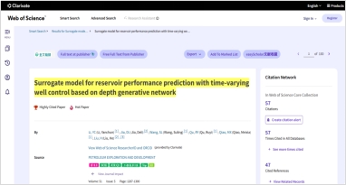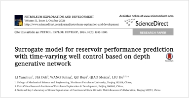 根据Clarivate Analytics(科睿唯安,原汤森路透知识产权与科技事业部) ESI (Essential Science Indicators) 2025年11月最新统计数据显示,milan米兰官网机电工程系青年教师李艳春发表在能源领域领军期刊Petroleum Exploration and Development (石油勘探与开发,中科院SCI一区Top期刊)上的论文“Surrogate model for reservoir performance prediction with time-varying well control based on depth generative network”同时入选ESI高被引论文与ESI热点论文。该论文由milan米兰官网李艳春、王素玲等人共同完成,milan米兰官网为论文第一通讯单位。