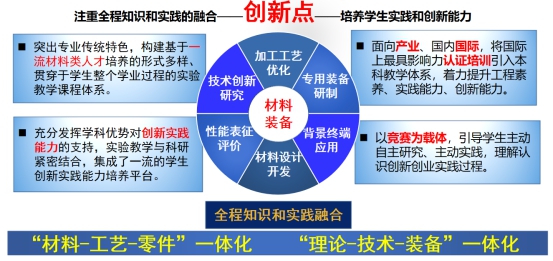专业聚焦能源战略需求,对接新材料产业,围绕材料设计、制备及性能调控,创新发展“一体两翼三融合”教学特色,培养能在材料微观组织控制、结构研究分析、制备加工工艺、新材料设计等领域从事科学研究、技术开发、工艺设计、生产及经营管理等方面工作的一流材料类应用型人才。