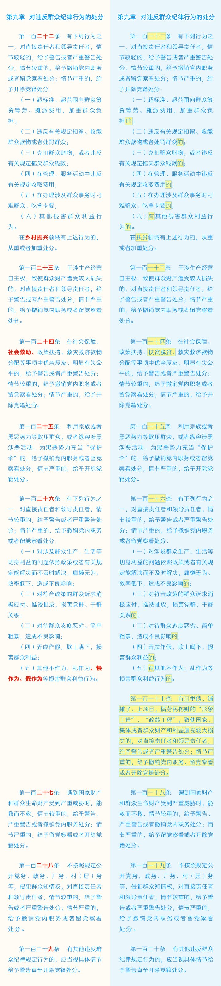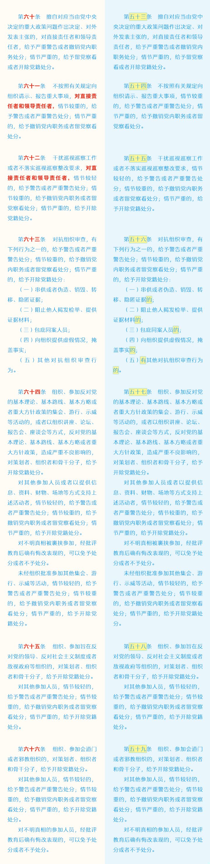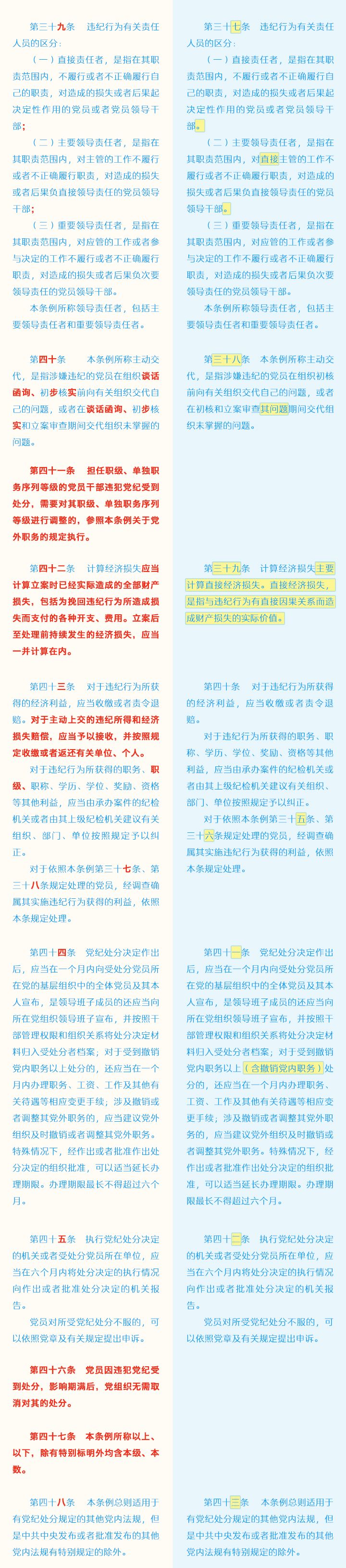 《中国共产党纪律处分条例》修订条文对照表