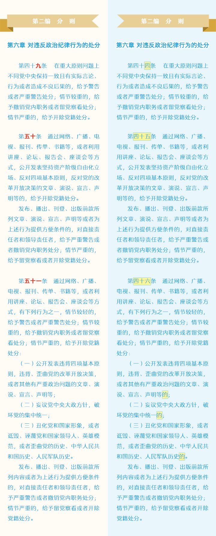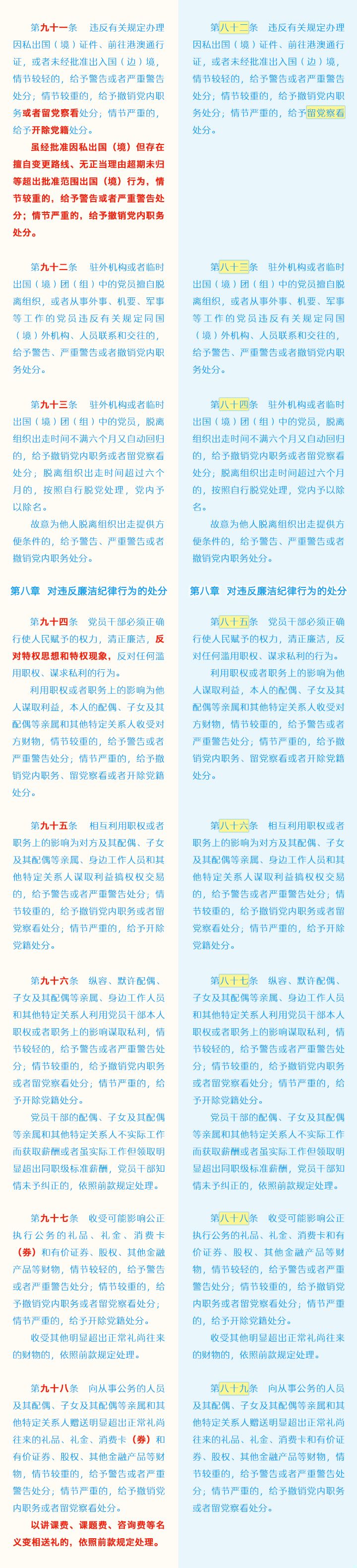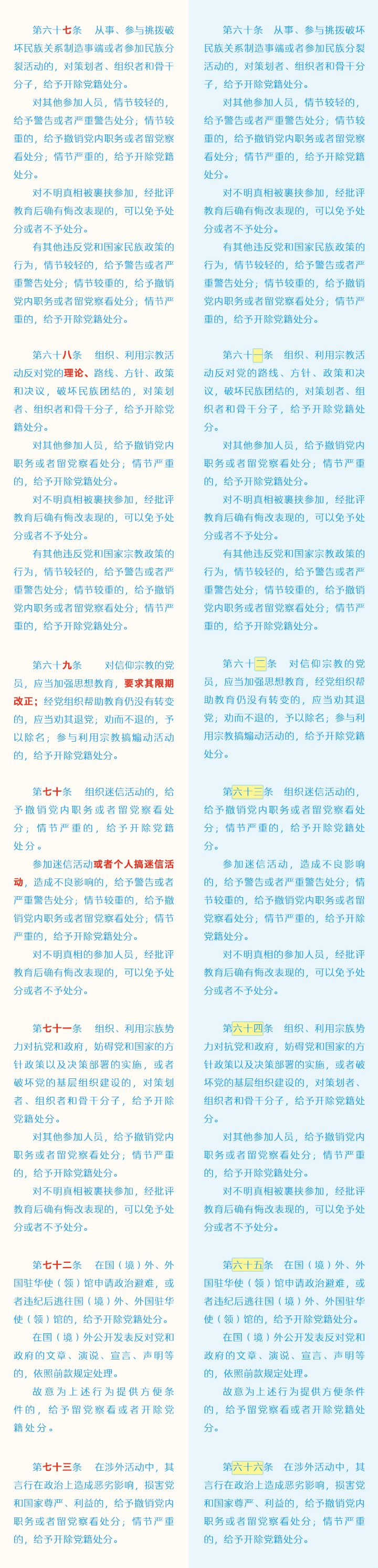 《中国共产党纪律处分条例》修订条文对照表