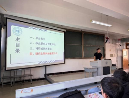 首先,李新亚老师通过对机械院学科特色、师资力量与科研平台的详细介绍,让大家对学院实力与发展方向建立全面认知;其次,介绍了研究生毕业的学术标准、论文要求及评奖评优的具体细则,为新生树立奋斗目标;然后,系统讲解学术论文、专利、科研项目等科研成果的呈现形式,引导新生掌握科研产出的核心路径;最后,梳理从课程学习、文献积累、课题开展到论文答辩的重要时间节点,助力新生做好阶段性规划。