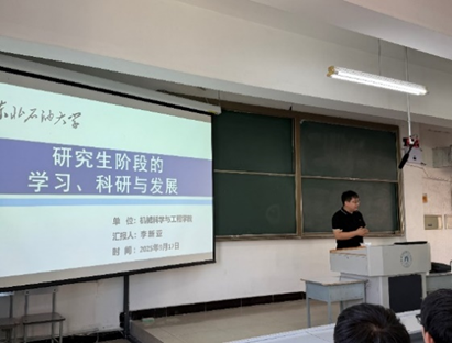 会上,学院硕士研究生导师李新亚老师以“研究生阶段的学习、科研与发展”为主题,从四个关键维度为新生梳理三年学业生活规划路径,明晰发展方向。